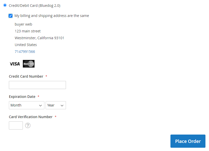 Bluedog Payment Gateway - Magento 2 extension allows you to take credit card payments through Bluedog Gateway 2.0 directly on your Magento 2 website. This extension is using API to process the transactions and does not store any card details on the shop.