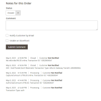- Support Refund Online from Magento backend, use the refund request to issue a refund against a settled transaction.