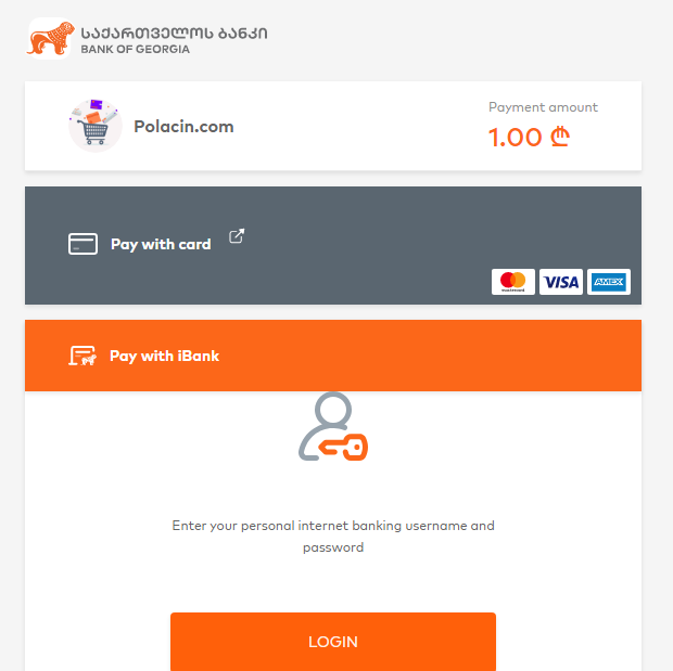 It directs your customers to an Online Payment Webpage hosted on Bank of Georgia website during the checkout process. Once they’ve paid, they’ll be redirected back to your website then update the order status.