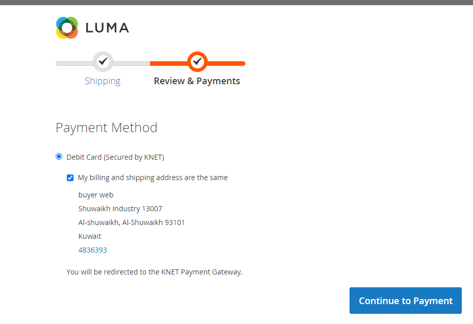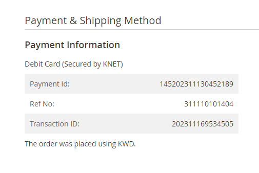 In case you need to see the live demo of KNET Payment Gateway - Magento 2 extension, please feel free to contact us or sales@polacin.com