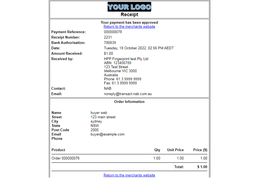 - Direct your customers to NAB Hosted Payment website during the checkout process. Once they’ve paid, they’ll be redirected back to your website.