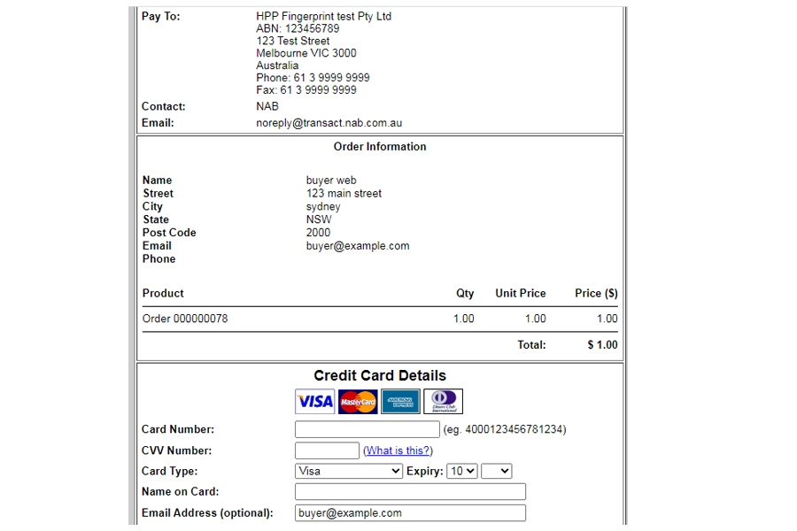 Features of NAB Transact Hosted Payment integration