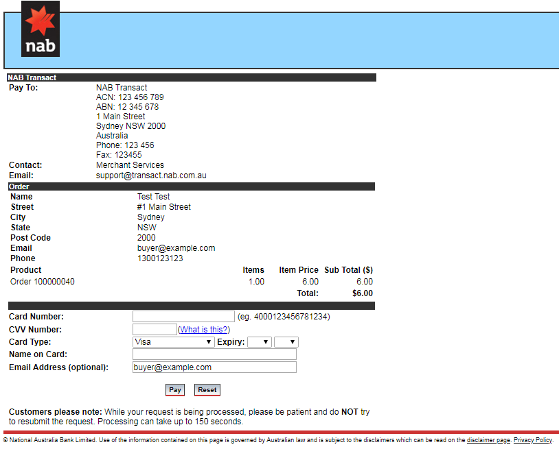 NAB Transact Direct Post: Allows your customer to purchase directly from your site using Credit Cards.