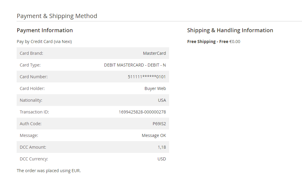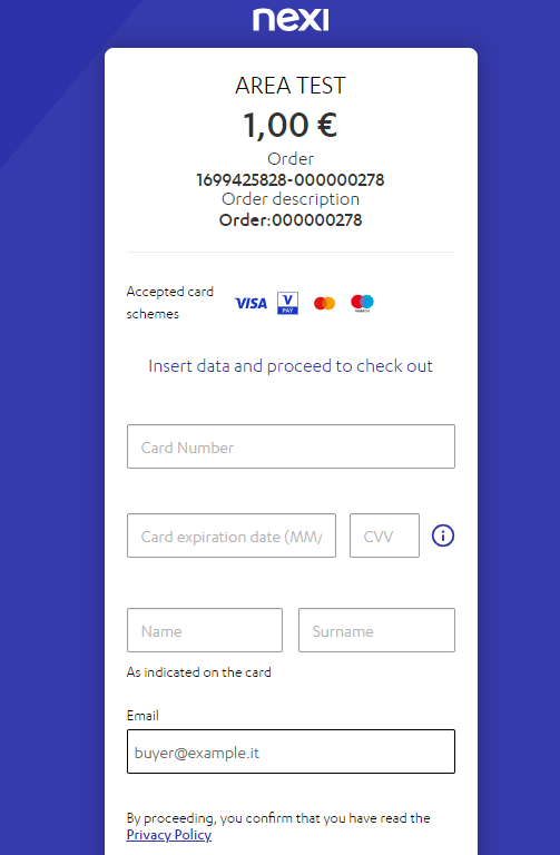 The extension uses Simple Payment Integration. You can allow your customers to enter their sensitive card data on a page that is hosted on the Nexi payment website. Therefore, you do not have to comply with PCI/DSS regulations.